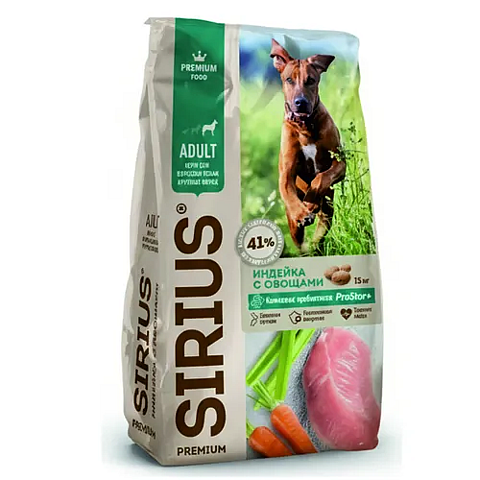 Sirius Корм для собак крупных пород Индейка с овощами 15 кг