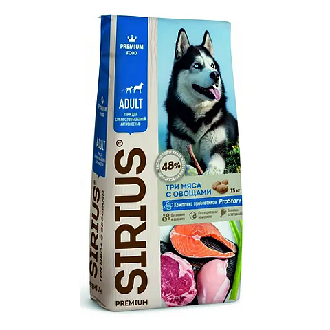 Sirius 3 мяса с овощами для активных собак 15 кг