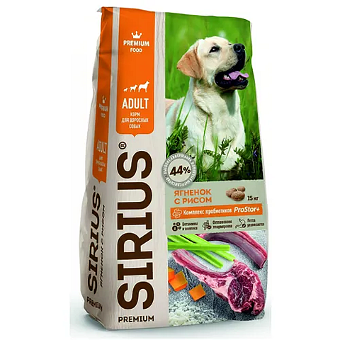 Sirius Корм для собак всех пород Ягненок 15 кг