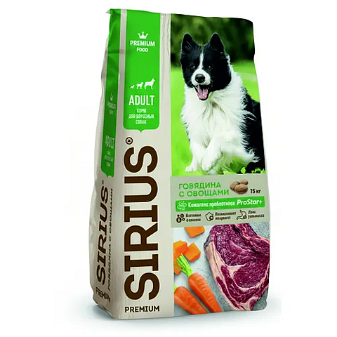 Sirius Корм для собак всех пород Говядина с овощами 15 кг