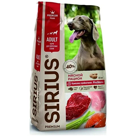 Sirius 3 мяса с овощами для активных собак 15 кг